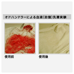 ●オドハンドラーは水に溶かすと活性化して過酸化溶剤となり、酸素の力で汚れを落とします。水に溶けた後は残臭はありません。有害物質は一切含まれていないため大変環境にやさしい雑菌・消臭・染み抜き洗剤。