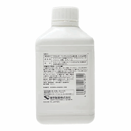 ●有効成分:100mL中 ベンザルコニウム塩化物 0.05g 含有 添加物:トコフェロール酢酸エステル、アラントイン、グリセリン、尿素、エタノール 性状:エタノール(日局エタノール68vol%)を含有する無色澄明の液です。