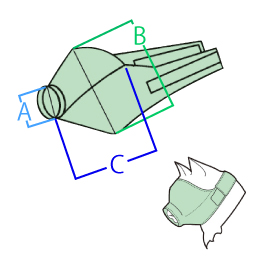 【仕 様】●材質:ナイロン注)Cのサイズは測る箇所によって若干違いがあります。鼻筋を測った場合の目安寸法としてご参照ください。