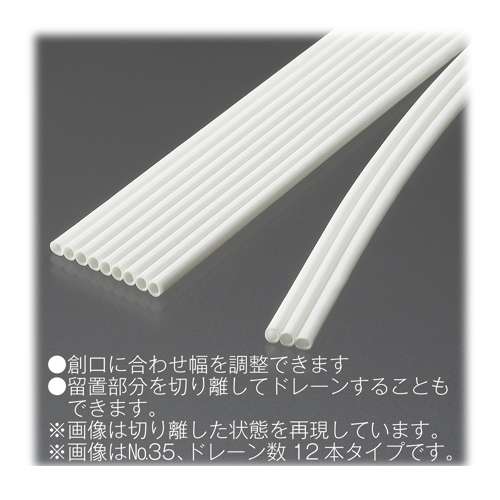 【特 長】●創口にあわせて幅を調節可能(切り離し可能)。●体内に留置し、手術後の排液を体外に誘導するために用いる。