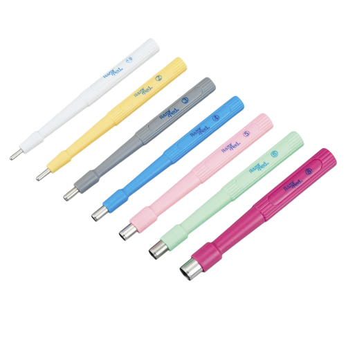 【特長】●使いやすい少量包装●使用時に操作しやすいようハンドル全面に滑り止め処理がされています。●サイズごとに色を変えており、視認性に優れています。●キャップ付きの安全設計です。