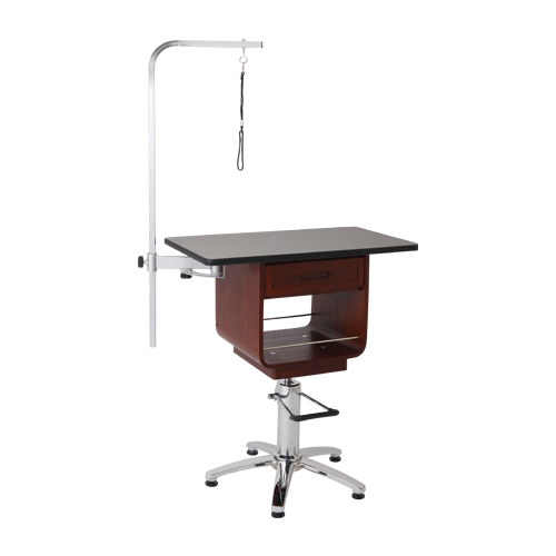 ●作業を邪魔しない140度可動式アーム。フットレバーで高さ調節が可能です。引き出し・アジャスター付き。
