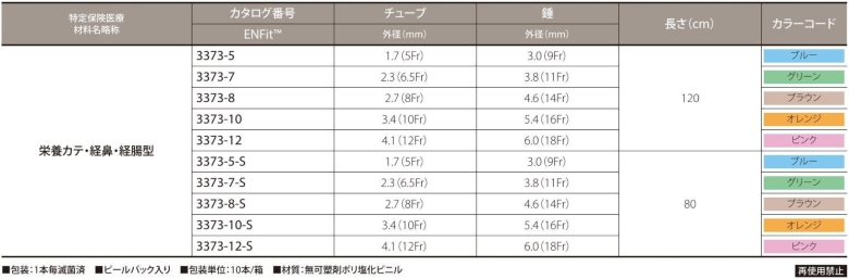 特定保健医療材料名略称:栄養カテ●経鼻●経腸型