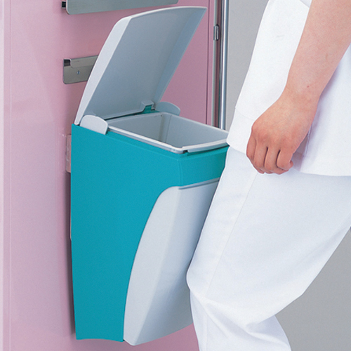 【特長】●フタに触れずに開けられます。●両手が塞がっていても膝を使ってフタの開閉ができます。●背面がマグネットのため、スチール製の救急カートやキャビネットに取り付けることができます。