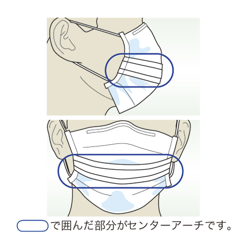 【特 長】●マスク中央のアーチ型プレートにより、マスク面と口の間に空間ができ、息苦しさを軽減します。●高性能フィルター入り。